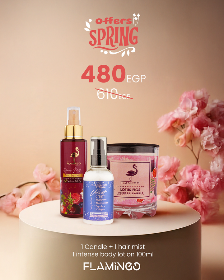 شمعة واحدة + معطر شعر واحد + لوشن للجسم مكثف 100 مل