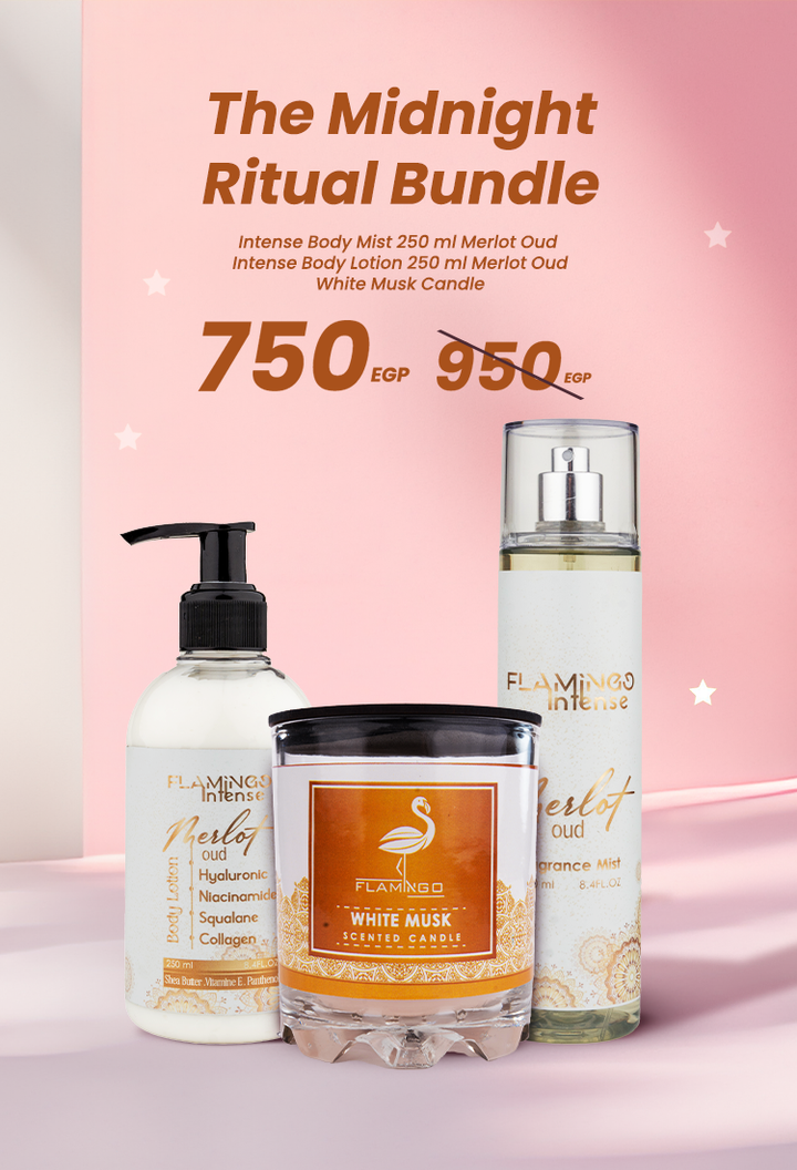 مجموعة طقوس منتصف الليل (رذاذ الجسم المكثف 250 مل ميرلو عود + لوشن الجسم المكثف 250 مل ميرلو عود + قناع شمعة أبيض)