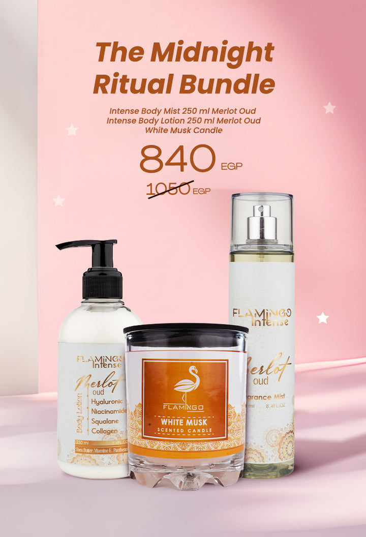 The Midnight Ritual bundle(Body Mist Intense 250 ml Merlot Aoud + Body Lotion Intense 250 ml Merlot Aoud + Candle White Mask)